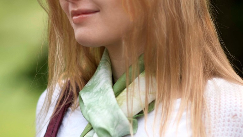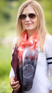 Congratulations to Nicole from South Dakota for being July’s scarf winner. Â May the silk and lushes shades of green bring wardrobe happiness and panache! Â It would be great if you’d send a photo of you and your scarf, but I understand those who are camera shy.Â