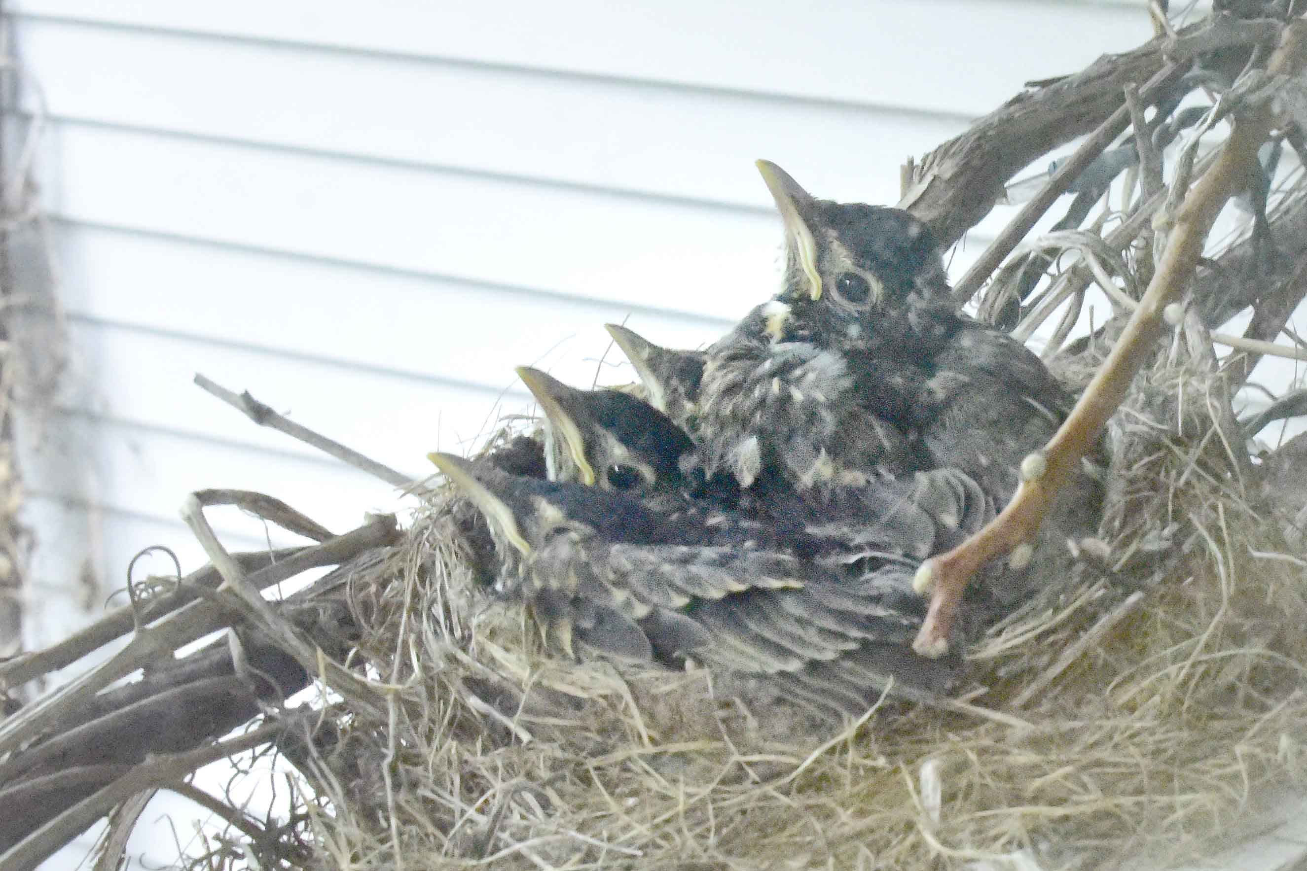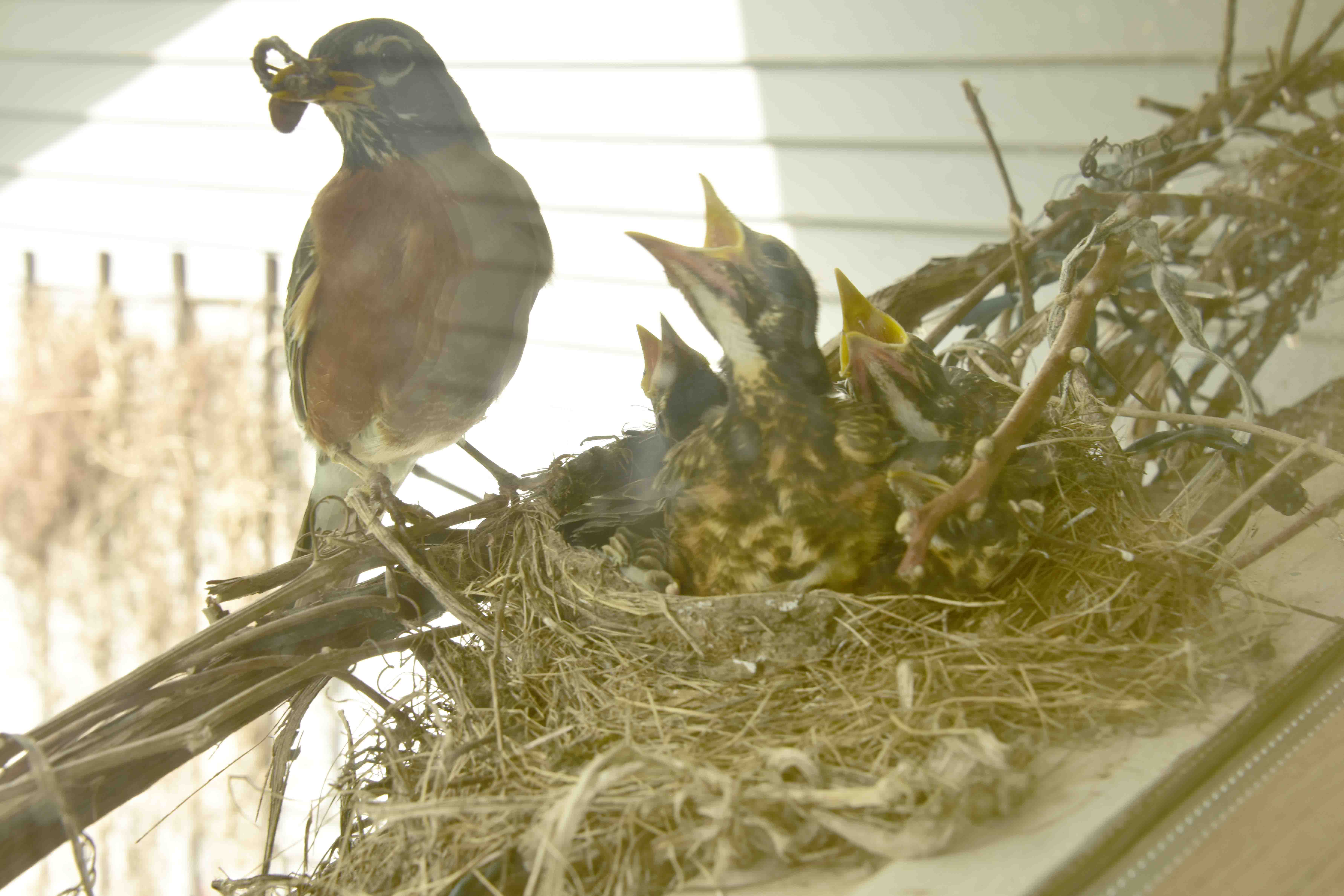 Therefore, it was with pleasure that I began receiving my husband’s texts about the robin babies living above our front door.