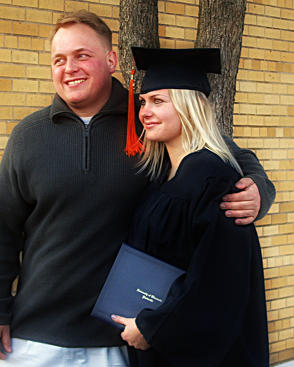 When Sasha graduated from high school, Bryce was there, on leave from the Navy.