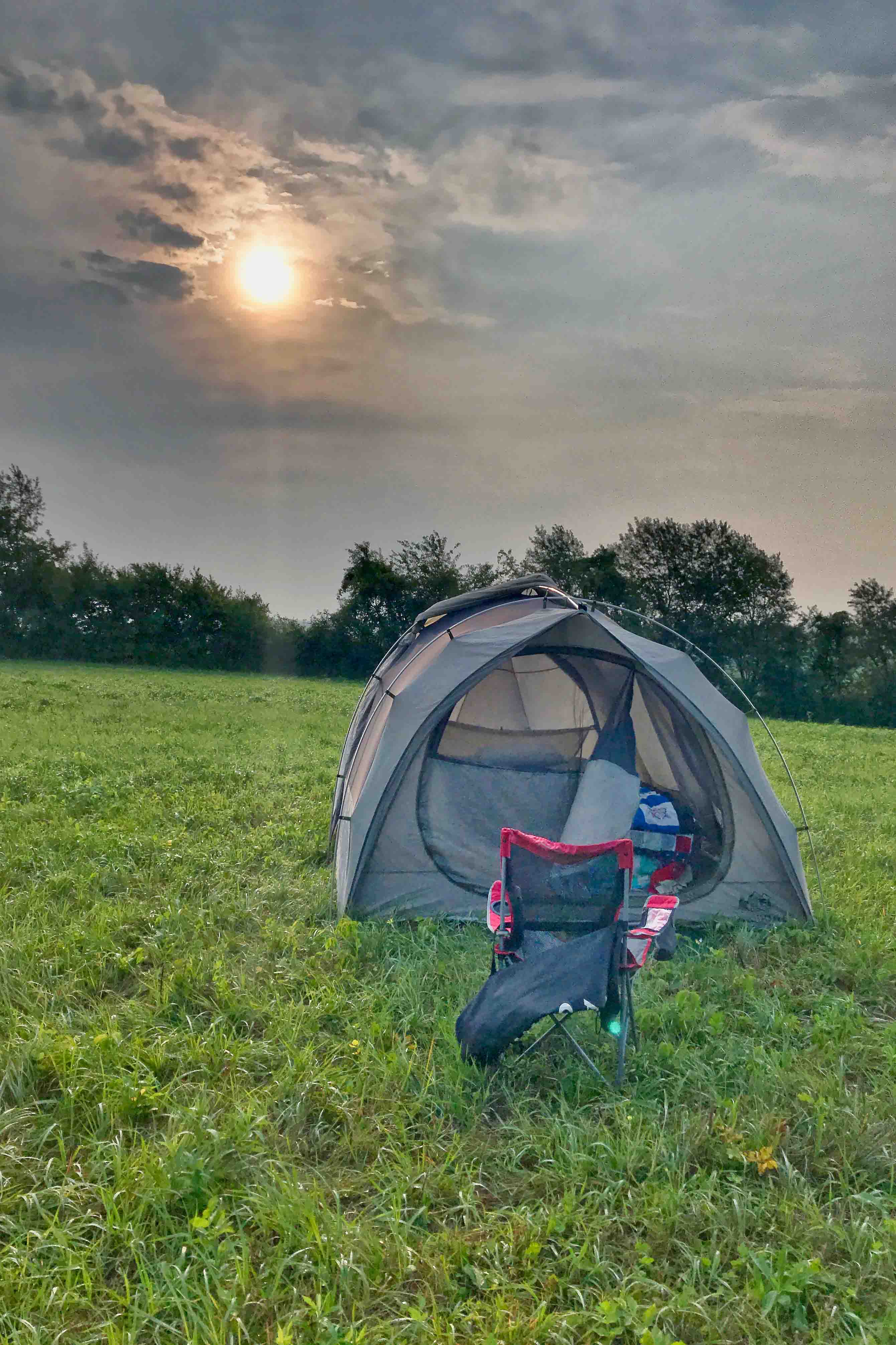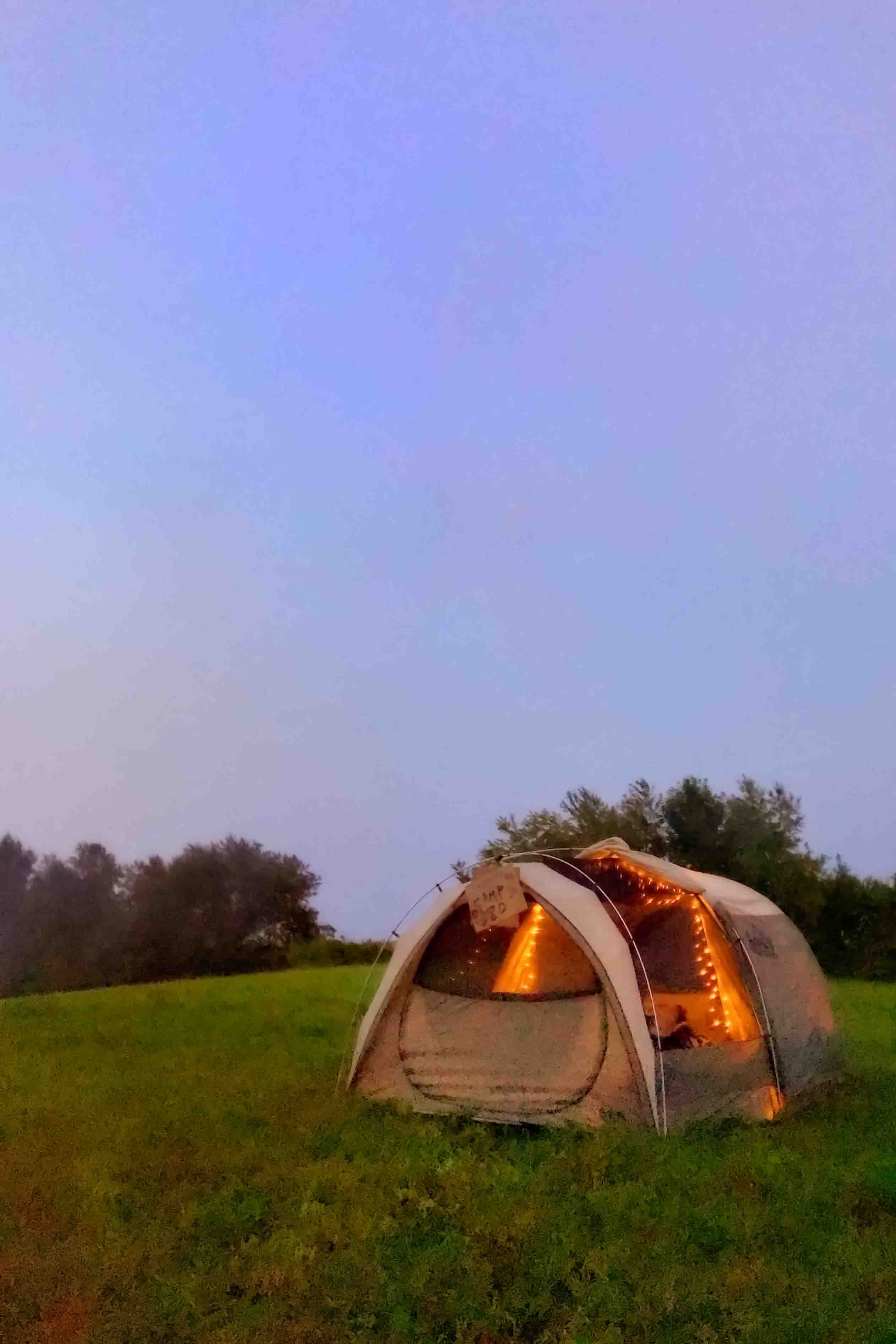 While brain-storming I blurted out something to the effect of, “Maybe we could put up a tent on your land? Except I’m not sure that we still have a tent.”