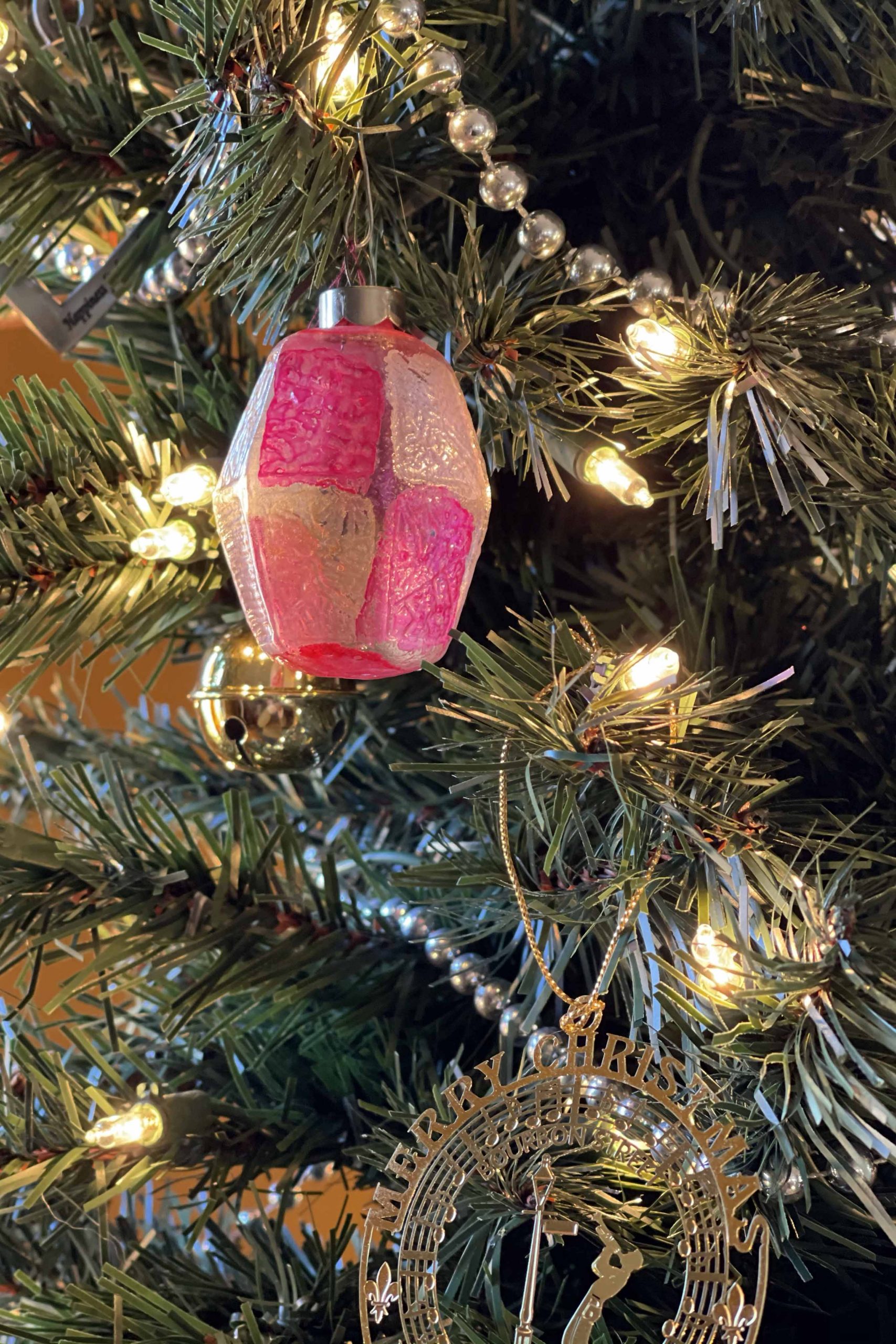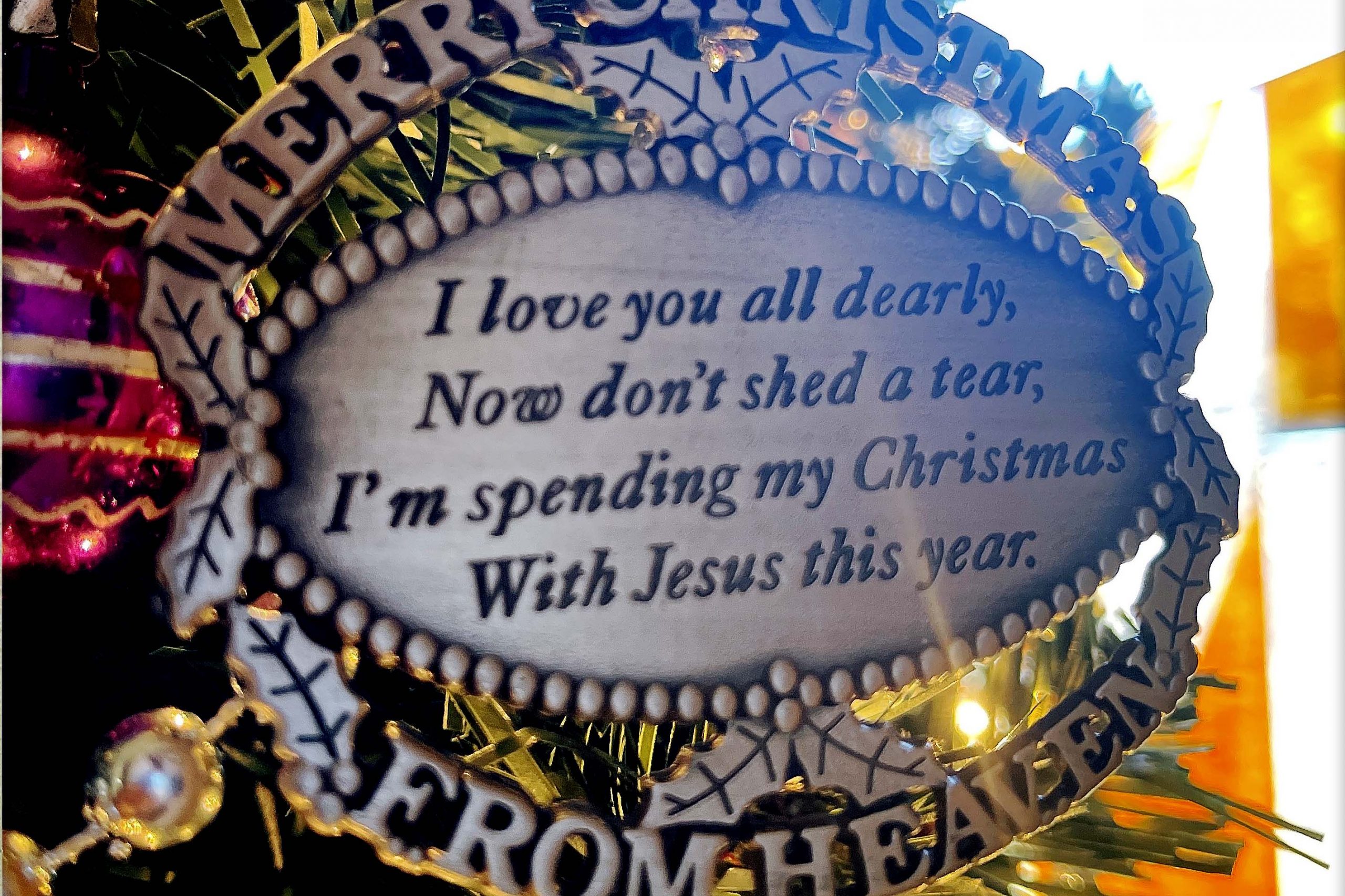 Some ornaments are unintentional reminders of a painful timeline. For instance, I have several pink ribbon cancer Christmas trims from when Mom was dying. People gave them as offerings of hope and support, but for me, they were, and are, reminders of death’s relentless march. Ultimately, Mom gave each of her children one last ornament. They read I love you all dearly, Now don’t shed a tear, I’m spending my Christmas With Jesus this year. She fought on for some time after that, but the message still shakes me more than comforts. Somehow, someway, I think it brought her closure, and so it goes on the tree. My eyes water, though.