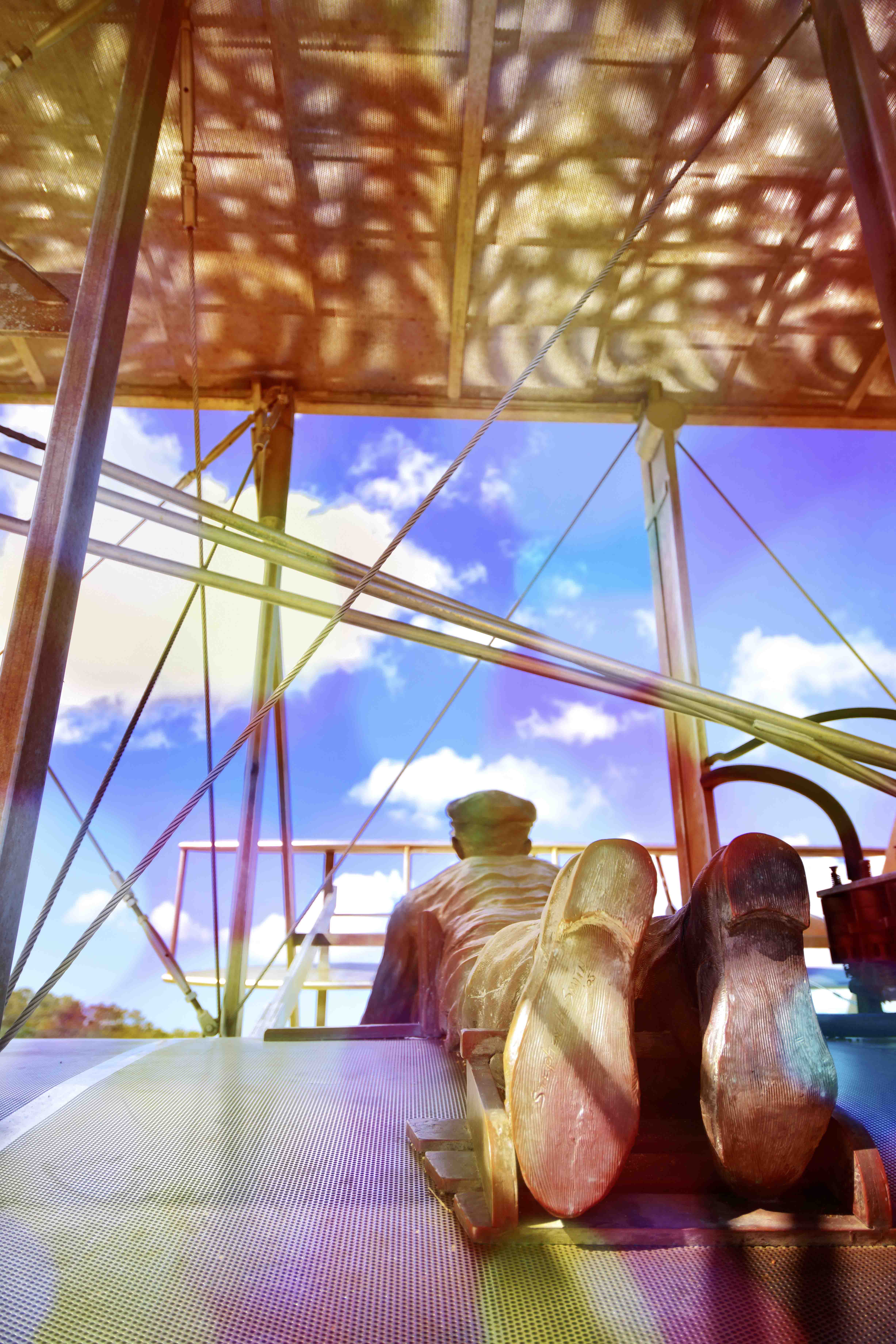 The Park Ranger—I’ll call him PR—was charming, funny, and inspirational. In short order, he totally destroyed my beach-yearning high. PR talked about the significance of Orville and Wilbur’s work. He talked about their unyielding focus on flight from the time they were boys. How a turkey vulture was key to understanding the construction of airplane wings, turning, and balance. He explained the hardships two educationally-limited guys faced as they forged ahead with their ambition to fly. PR laughed as he said Orville and Wilbur’s sister was pivotal in getting “over themselves” when they wanted to quit. PR was interesting, had me listening, and then he sucker punched me.