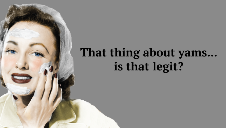 When I heard that question from a younger (as in non-menopausal) woman I was curious. What thing about eating yams? So, like any normal clueless person, I Googled it. As it turns out, it’s not so much about eating yams. It is, however, about as using wild yams as a progesterone promoting cream.  Huh?