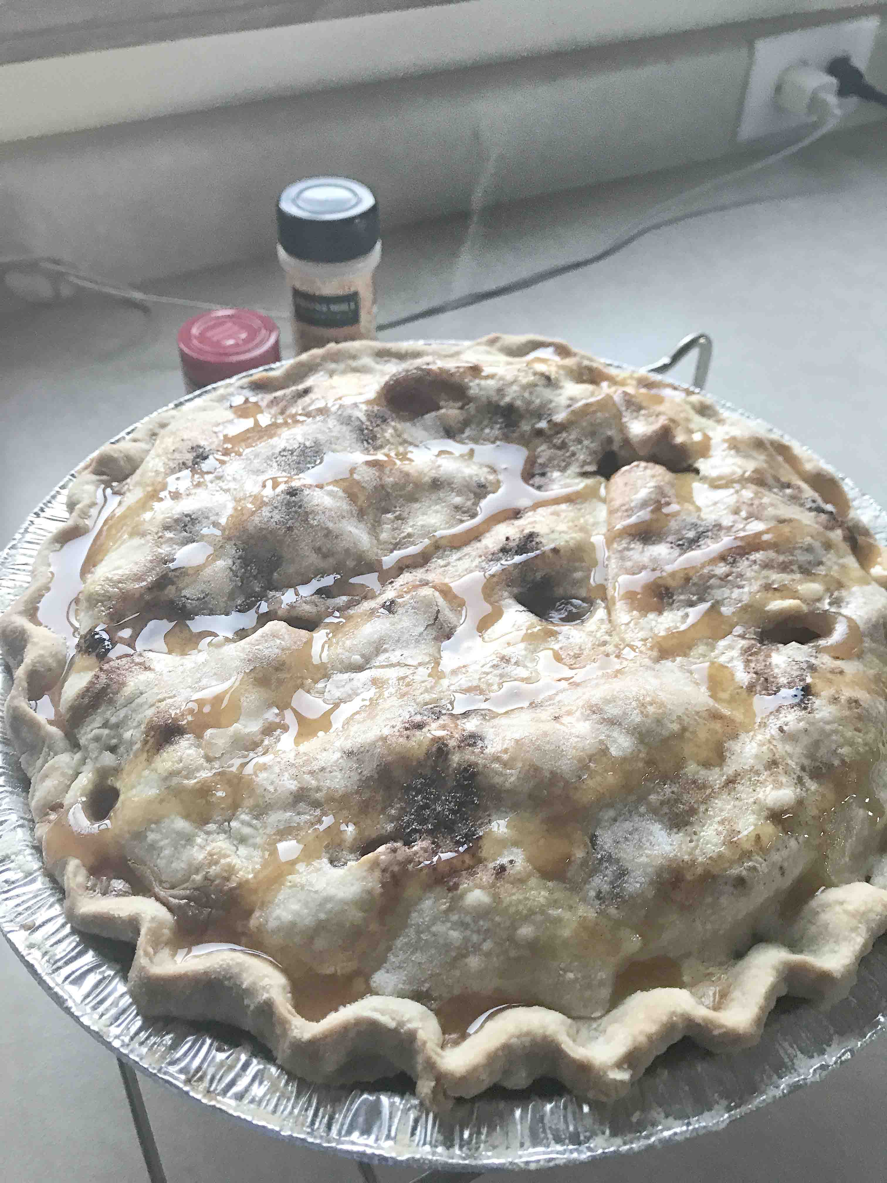 One apple pie, still hot and bubbly, went to our neighbors who live just south of us because they provide so many kindnesses over the course of a year.