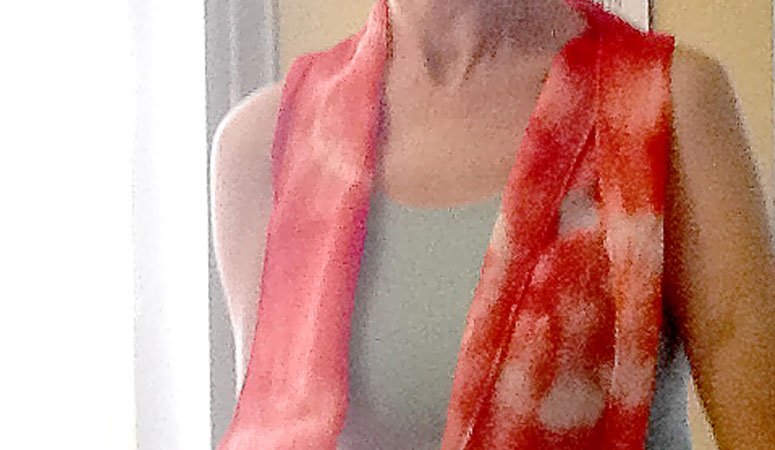 Thank you for my beautiful scarf. It is wonderful. I have a picture of me wearing it on FB and I’ve attached a couple here, too.