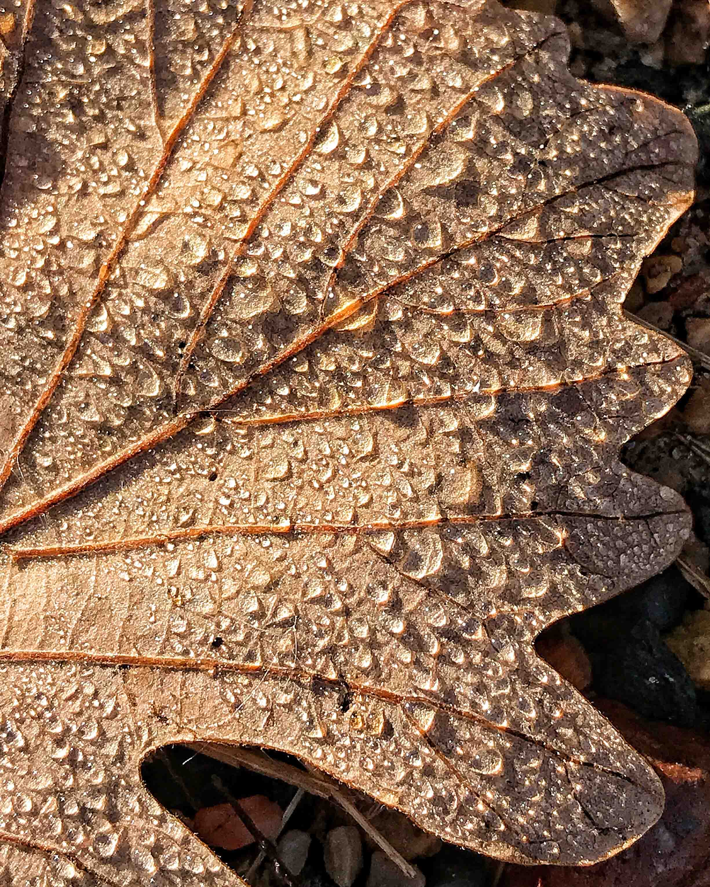 The ground, frozen, waits for snow. You would think a biege landscape would be ugly, but no. Hoarfrost delicately outlines grass, leaves, and twigs. The crystalized world around me is breathtaking and magical. It’s as though Ma Nature, bored, found her glue gun, an extra large jar of glitter, and got busy.